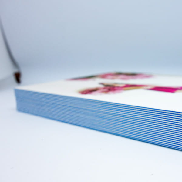 | Material | 4 Lagen Mohawk Superfine mit einer schönen Textur, die sich ganz natürlich anfühlt. Die Karte ist unbeschichtet und läßt sich sehr gut beschreiben. Zwischen den einzelnen Papierschichten befindet sich eine ozeanblaue Farbkante - das macht diese Karte dann so wunderbar dick (600 g/m). |